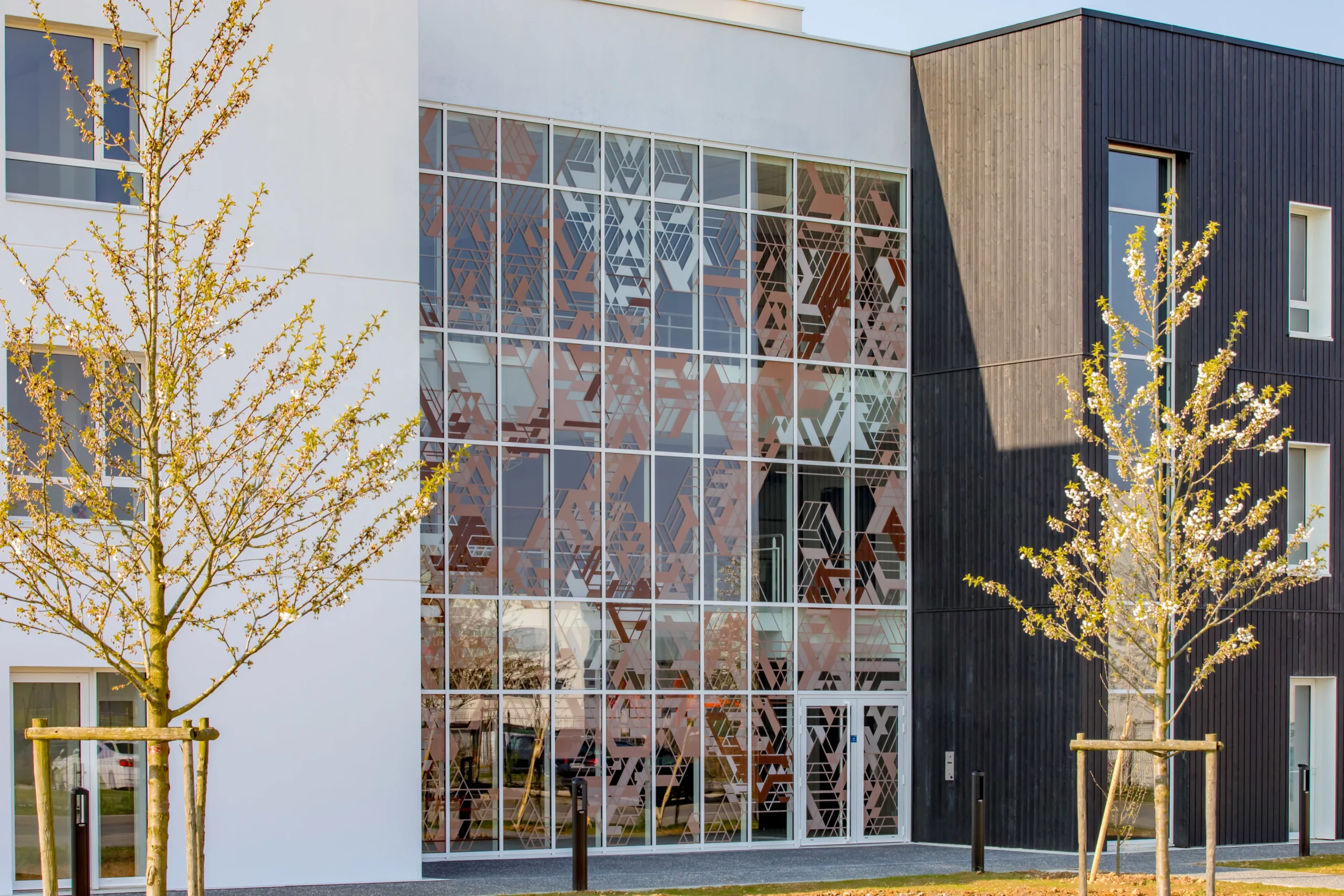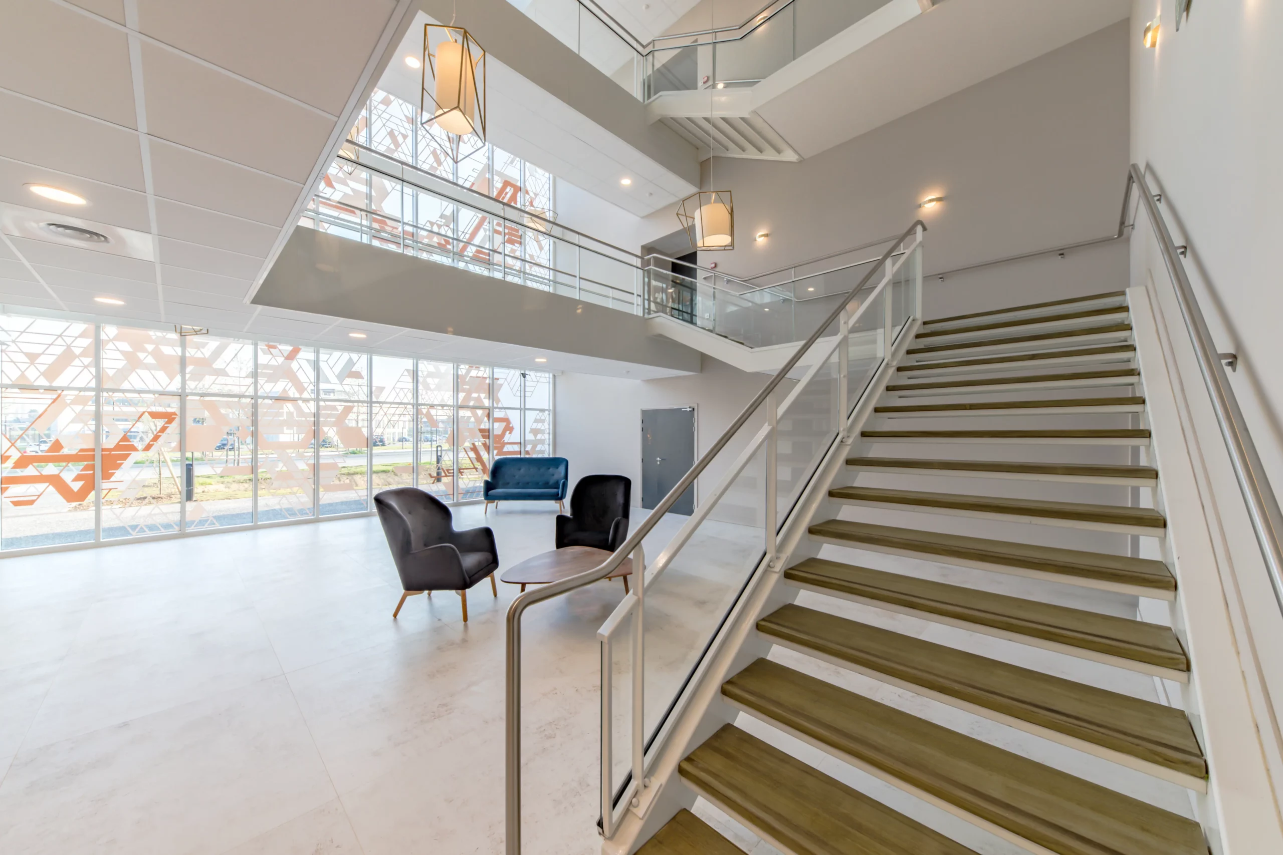 Immeuble de bureaux à l’architecture contemporaine, animé par une remarquable façade où le bois brûlé côtoiera un mur rideau détaillant un hall animé par un escalier moderne.