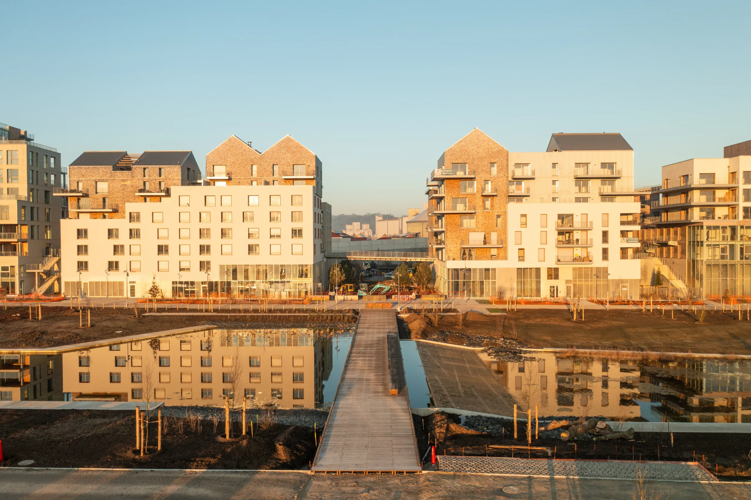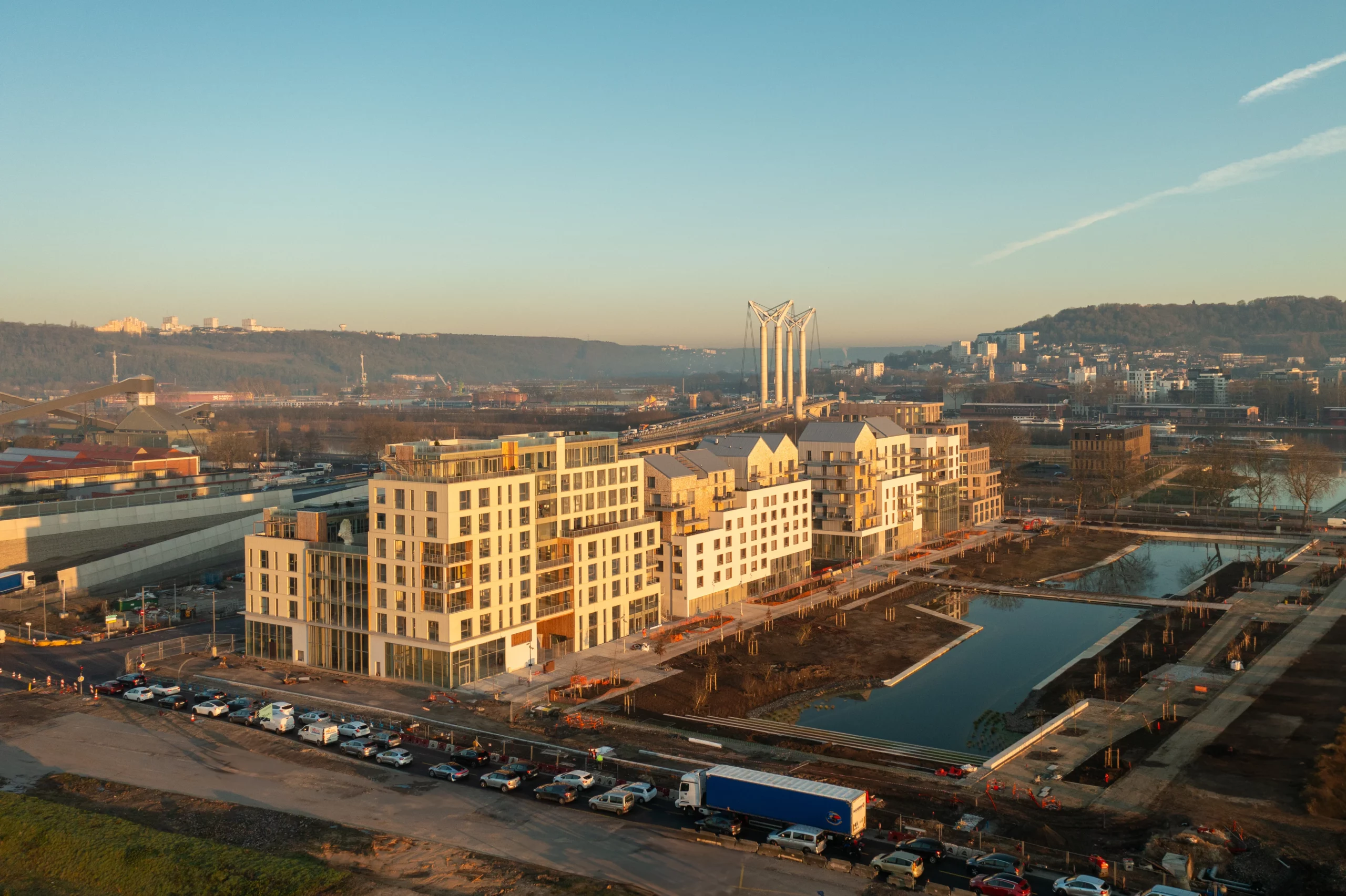Situé dans le futur quartier Flaubert de Rouen, les résidences “Les Jardins“ et “Les Patios“ s’inscrivent dans la continuité des principes écologiques basés sur une conception verte fondatrice du projet GAÏA.